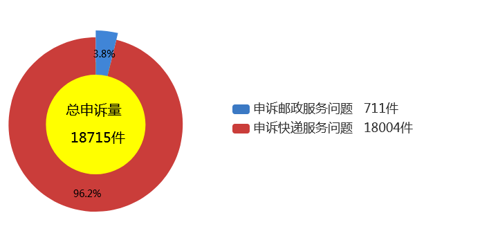 用户对邮政服务问题申诉711件,环比增长17.1%,同比增长5.5%。
