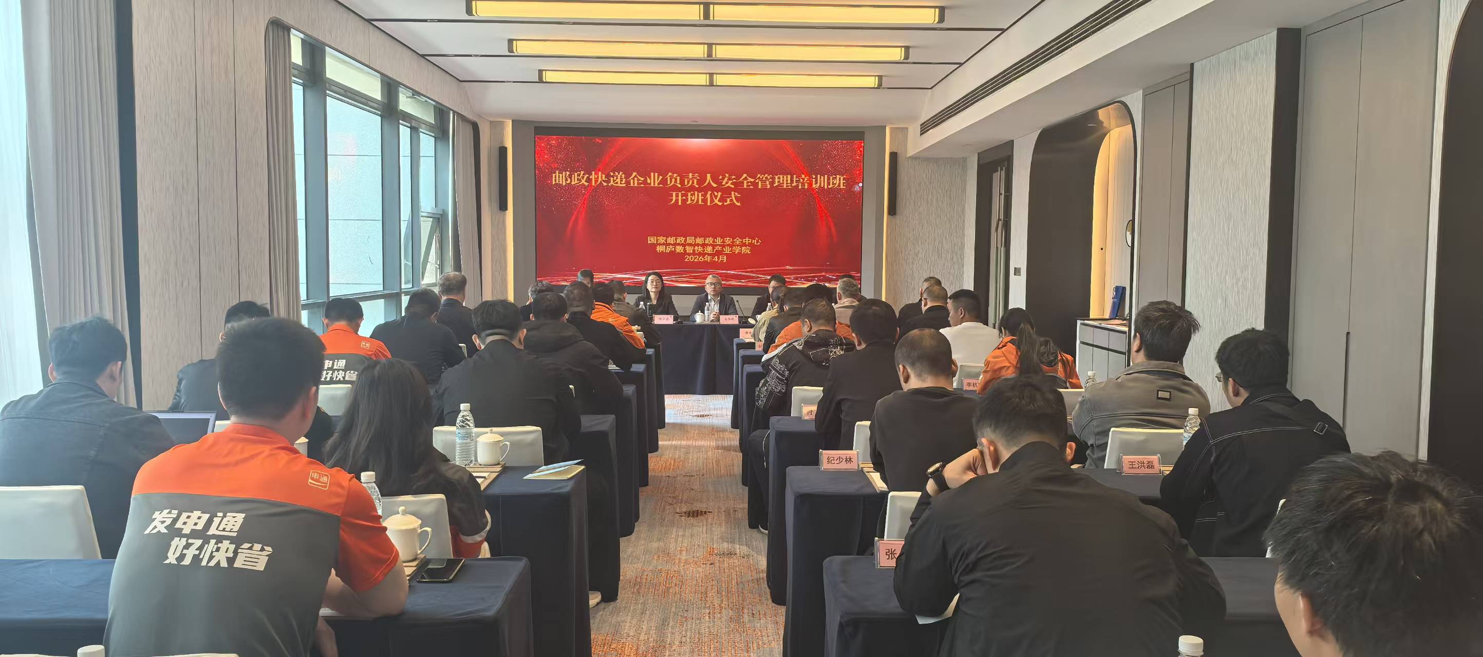 为推进国家邮政局安全生产治本攻坚三年行动,落实国务院安委会安全生产工作考核整改要求,进一步提升行业安全管理能力,4月7日-11日,国家邮政局邮政业安全中心在安全教育培训杭州基地(桐庐校区)举办邮政快递企业负责人安全管理培训班。邮政业安全中心副主任高黎明、桐庐县副县长陈少霞出席开班仪式并讲话,邮政业安全中心规制处及浙江邮电职业技术学院、浙江省安全中心相关负责人参加开班。来自邮政、顺丰、申通、中通、圆通、京东、极兔等7家品牌企业的28名安全管理负责人参加培训。